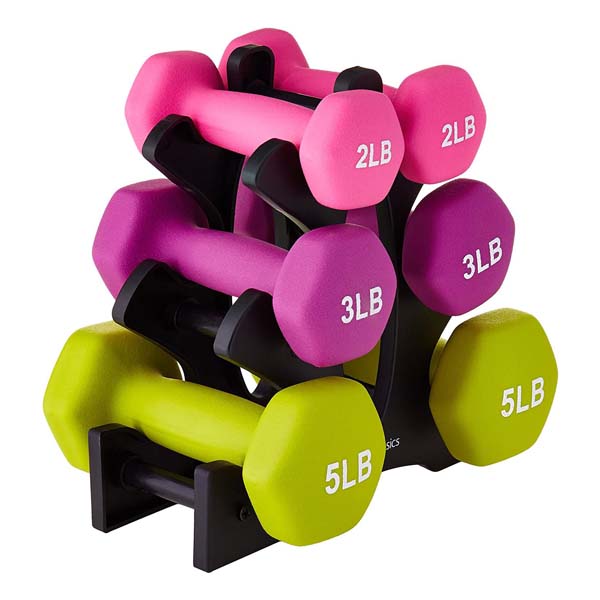 Zestaw mini hantli + stojakZestaw mini hantli + stojak